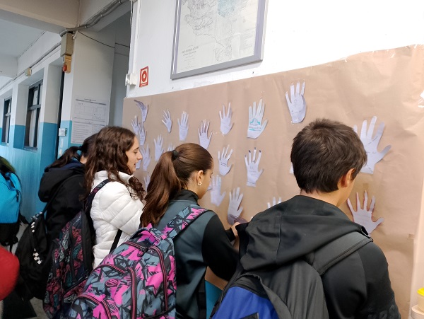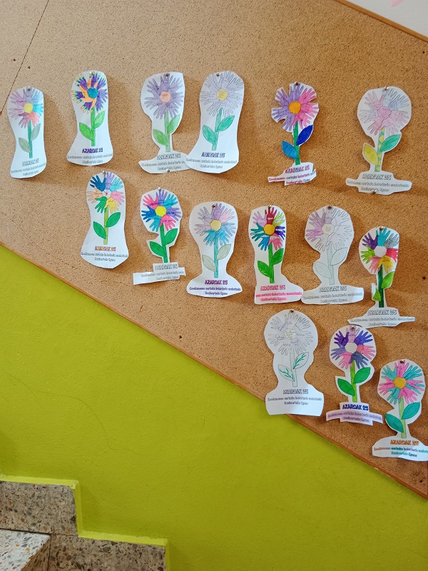 Para este día el grupo de Coeducación Infantil y Primaria ha compartido con el profesorado una serie de propuestas para trabajar en las aulas con el alumnado. Por ejemplo, reflexionar sobre diferentes canciones, vídeos, cuentos... y posteriormente, realizar murales y manos decorando los pasillos del centro. Además, tanto en las horas de entrada y salida como en las de patio, hemos escuchado varias canciones que hacen referencia a este día.