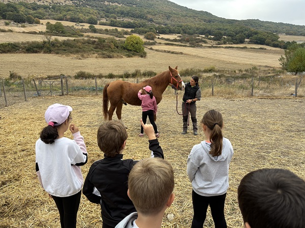 En la granja escuela “Gure Sustraiak”, situada en el precioso valle de Ollo, vivimos dos jornadas únicas. Nada más llegar, nos enseñaron el caserío y el albergue. Conocimos de cerca a los burros, caballos, gallinas y conejos, y aprendimos cómo se cuidan y qué comen.