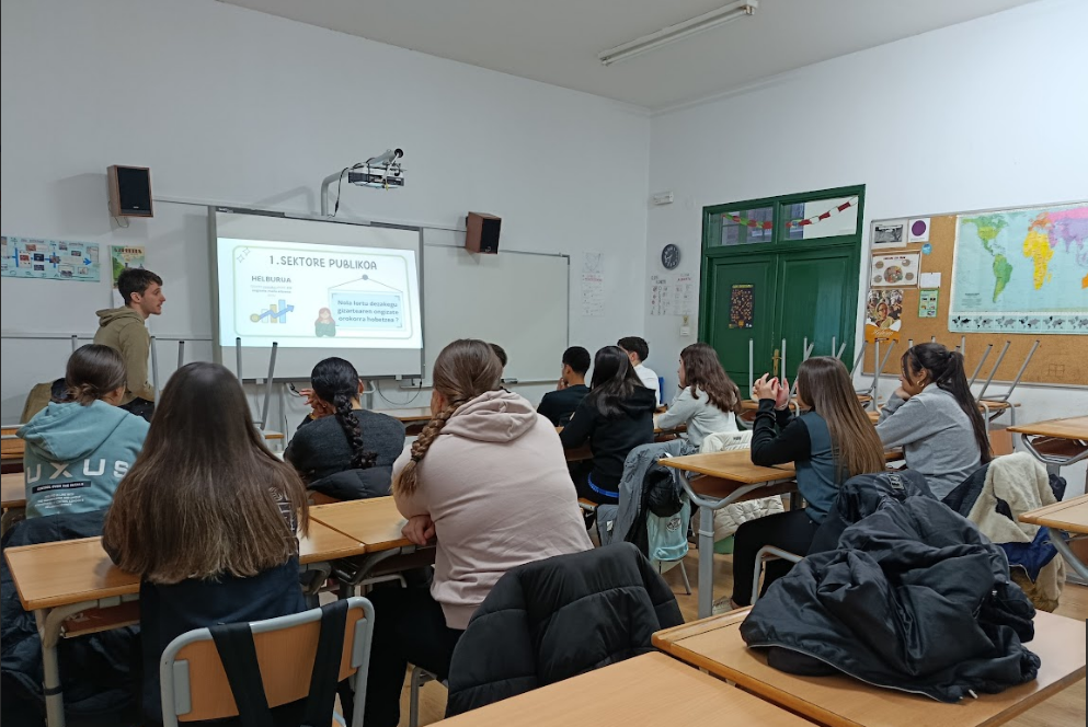 El Gobierno Vasco y la Diputación Foral de Gipuzkoa tienen en marcha el Programa Economía e Impuestos con el objetivo de aumentar la conciencia fiscal de los jóvenes. El programa combina la elaboración de una unidad didáctica con la charla de un técnico de la Diputación.