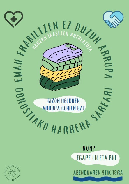 Nuestro alumnado ha llevado a cabo diversas iniciativas en torno a este proyecto: han enviado un escrito a las familias de Egape ikastola para animaros a participar en la campaña, han preparado presentaciones para la campaña de sensibilización que han presentado en diferentes aulas de Primaria y Secundaria, y también han diseñado carteles.