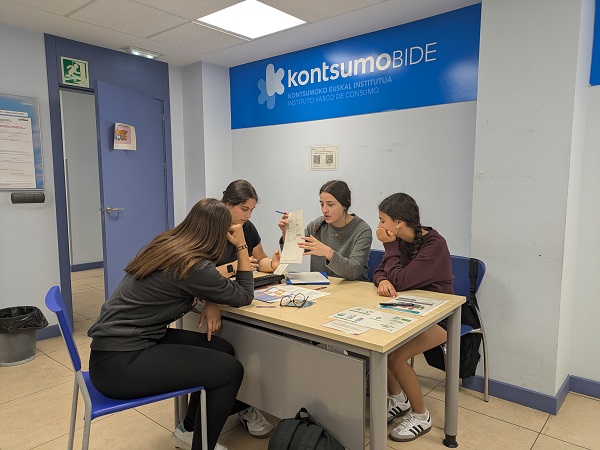 El alumnado de 3º de ESO, en cambio, estuvo en la sede de Kontsumobide en Intxaurrondo el 20 de abril. Allí recibieron una charla y llevaron a cabo una ginkana. Superaron nueve pruebas simulando una situación real: contrataron un teléfono móvil y una compañía adaptados a sus necesidades, interpretaron la factura enviada por la compañía y aprendieron el procedimiento a seguir para interponer reclamaciones ante las discrepancias.