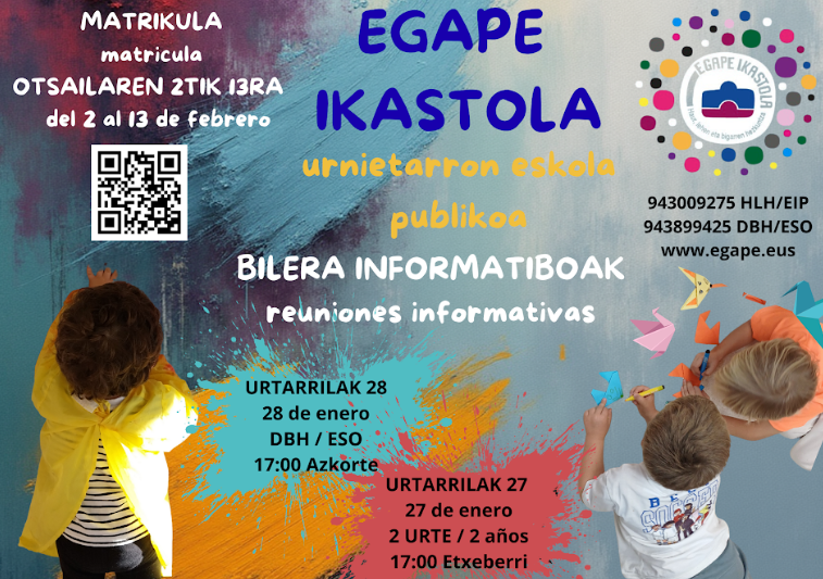 Como todos los años, en Egape Ikastola hemos organizado unas jornadas de Puertas Abiertas para que podáis conocer de cerca la futura ikastola de vuestros hijos e hijas.